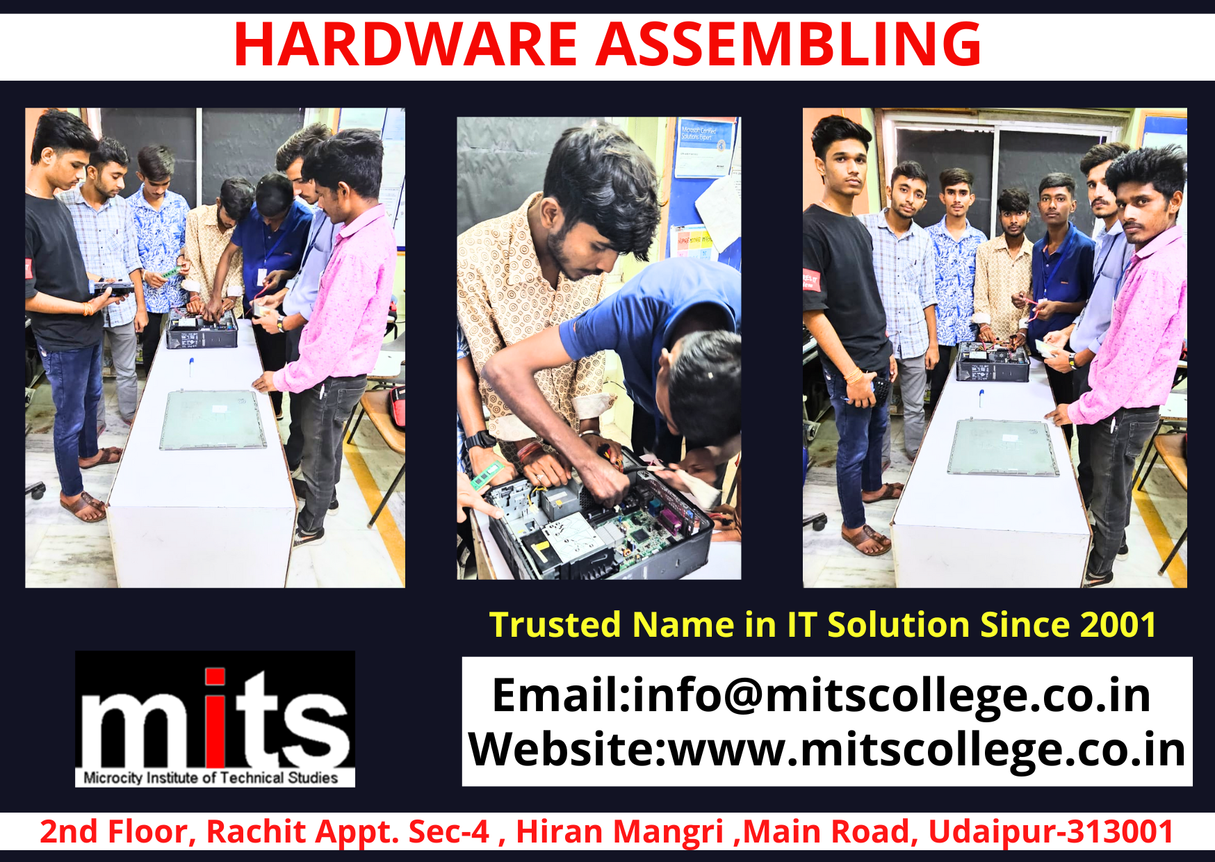Microcity Institute of Technical Studies (MITS), Udaipur mein students ke liye alag se practical classes available hain. Institute ka focus sirf theoretical padhai par nahi, balki hands-on training par bhi hai, jisse students apne subject ke practical aspects ko ache se samajh sakein.
