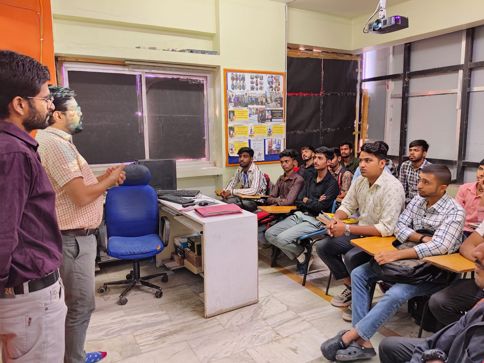 “The classroom is equipped with a projector for presentations and lectures.”